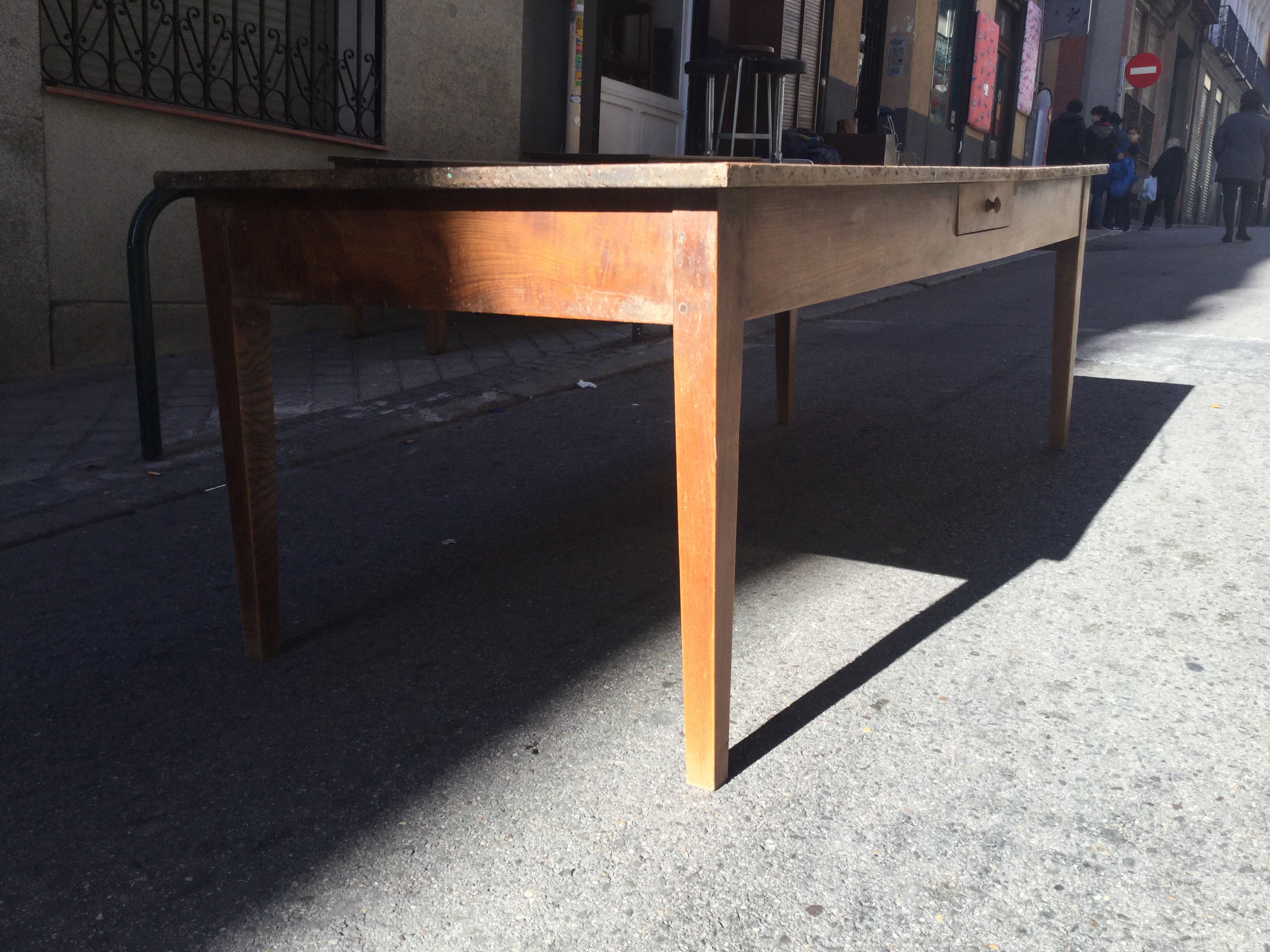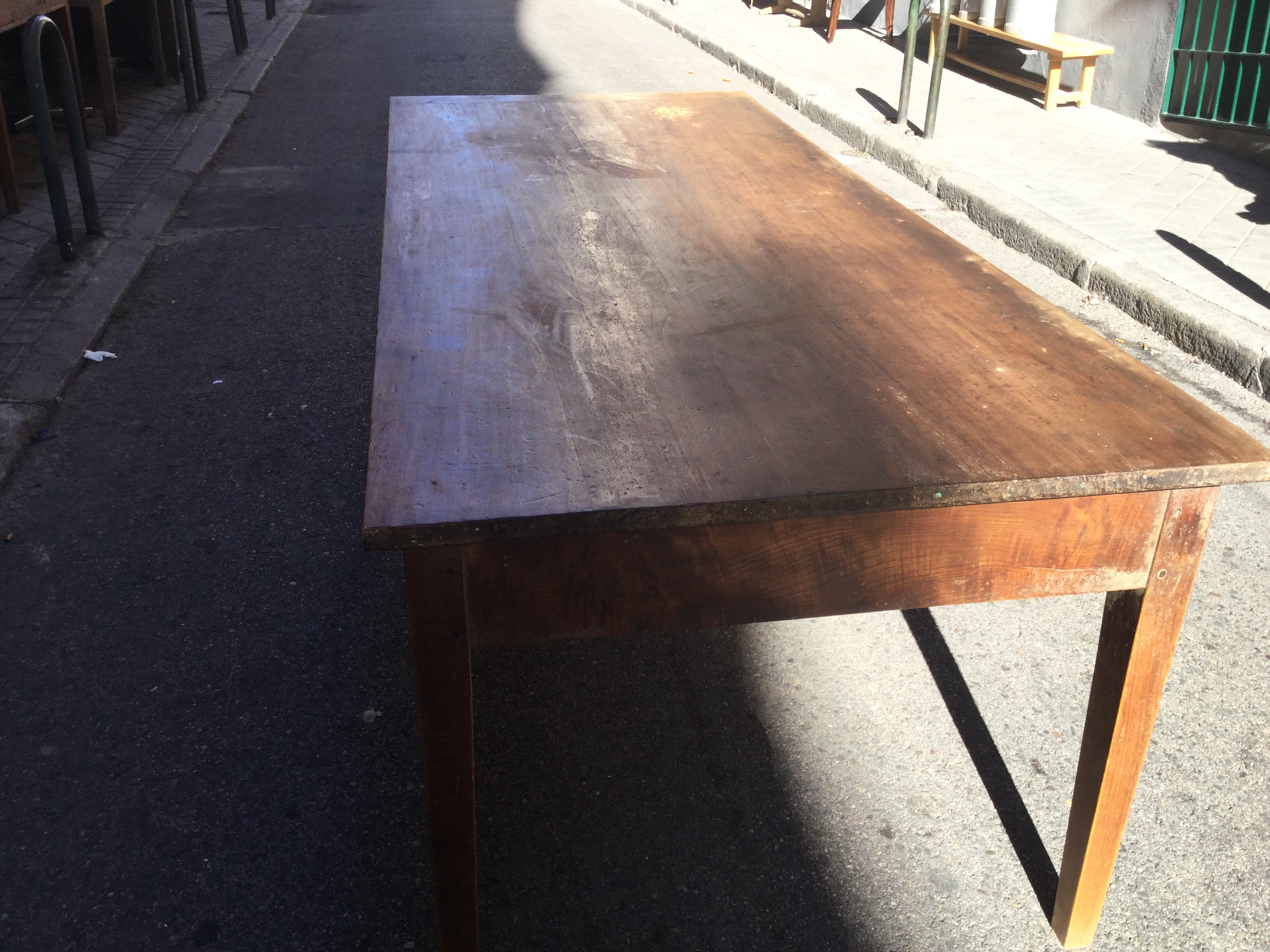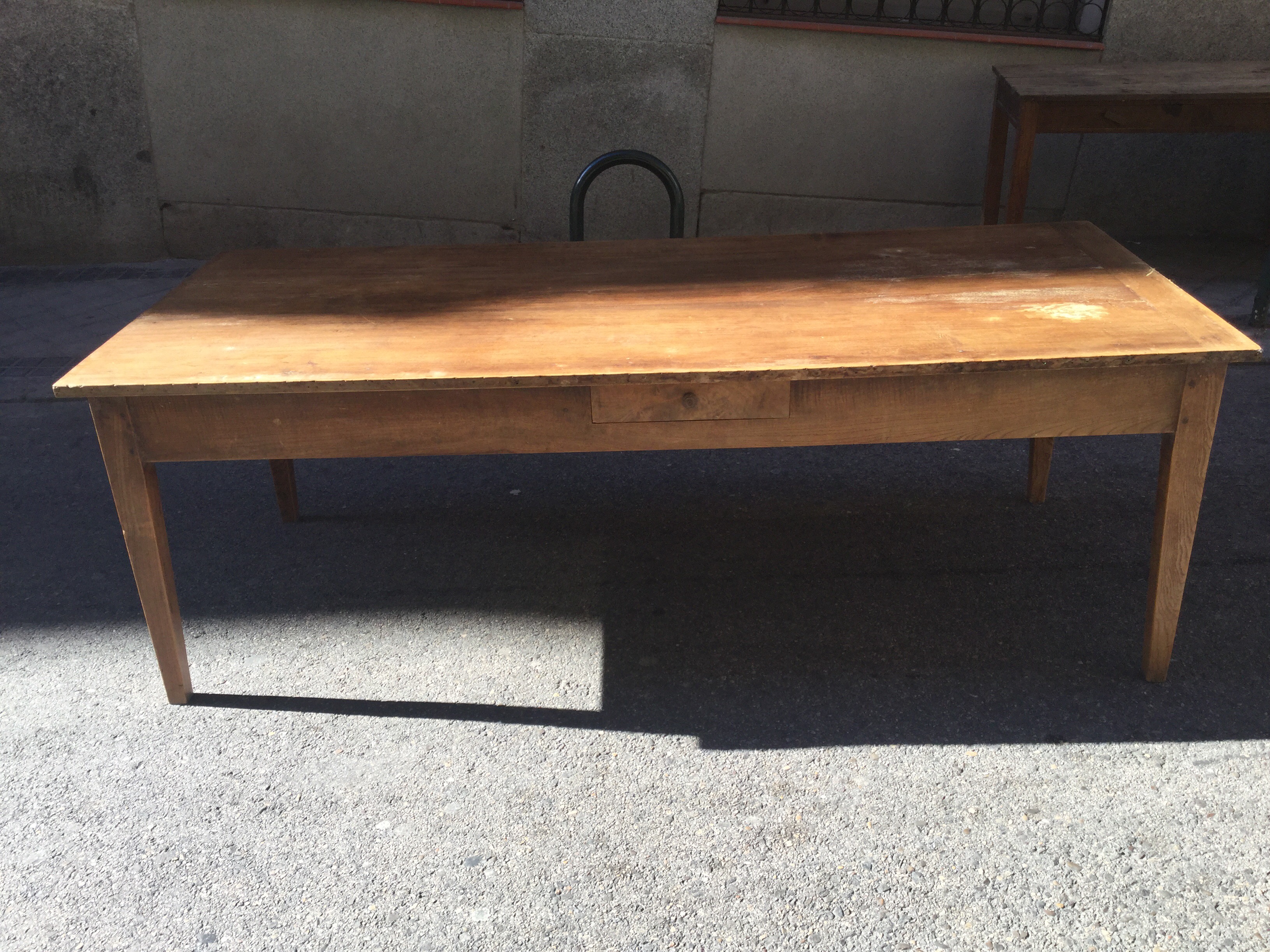 Mesa francesa de nogal, pata de aguja con dos cajones. Medidas = 2,20 x 0,90. Precio: 799 €