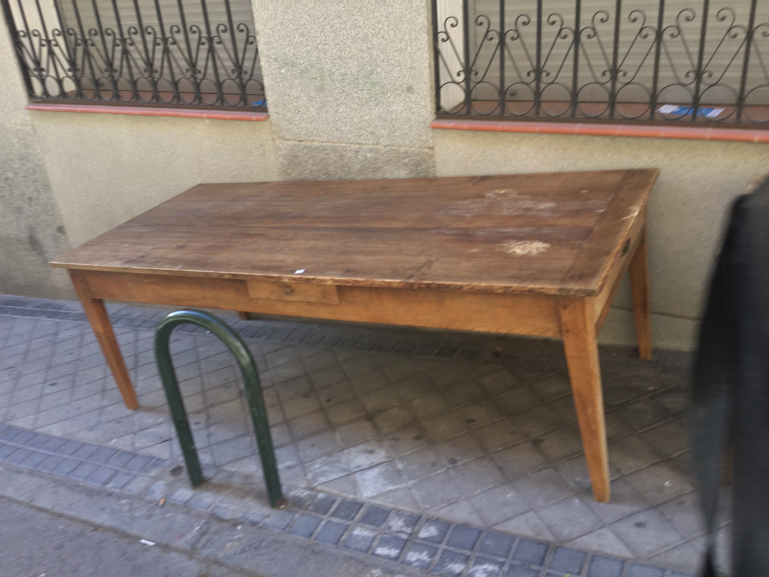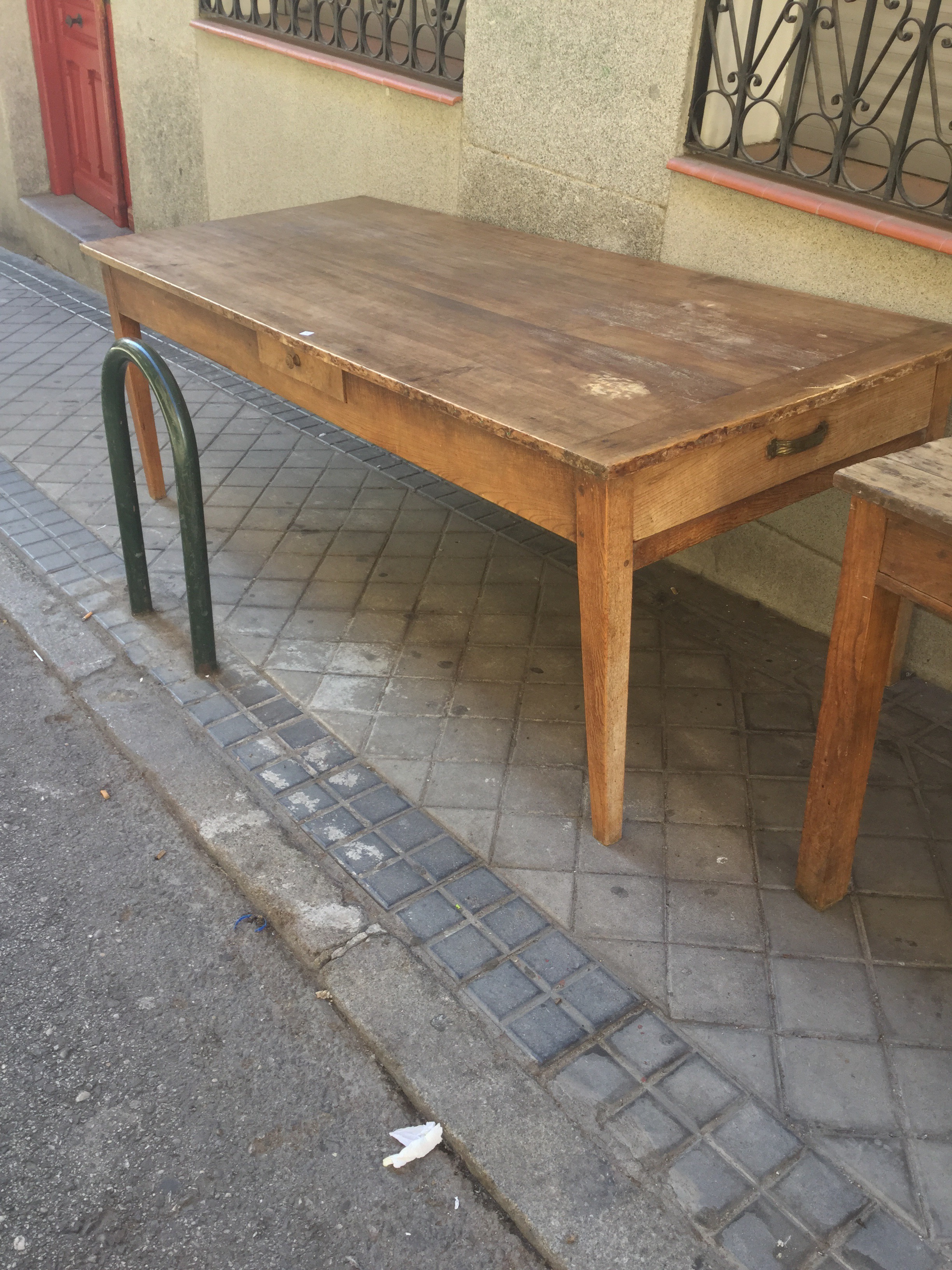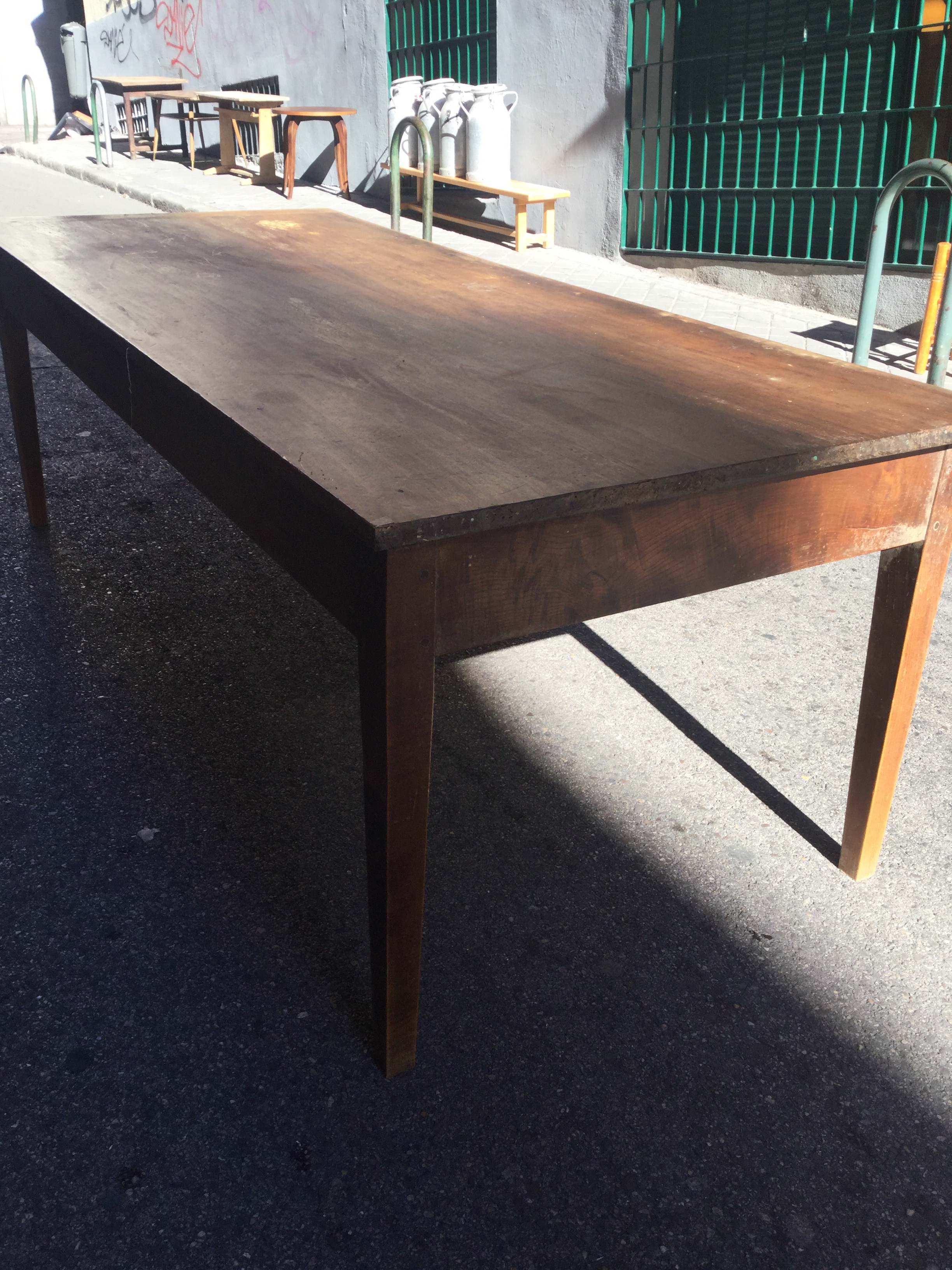 Mesa francesa de nogal, pata de aguja con dos cajones. Medidas = 2,20 x 0,90. Precio: 799 €
