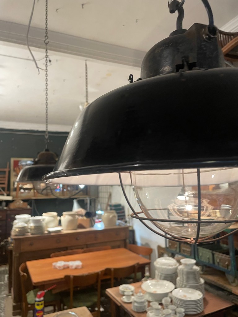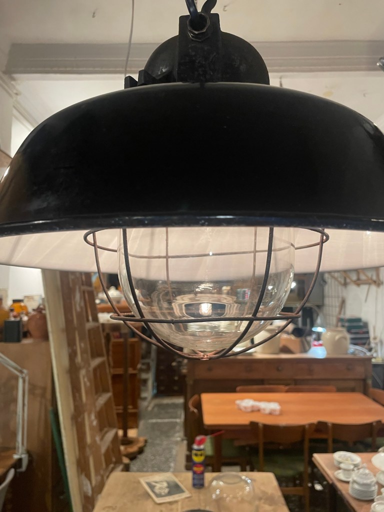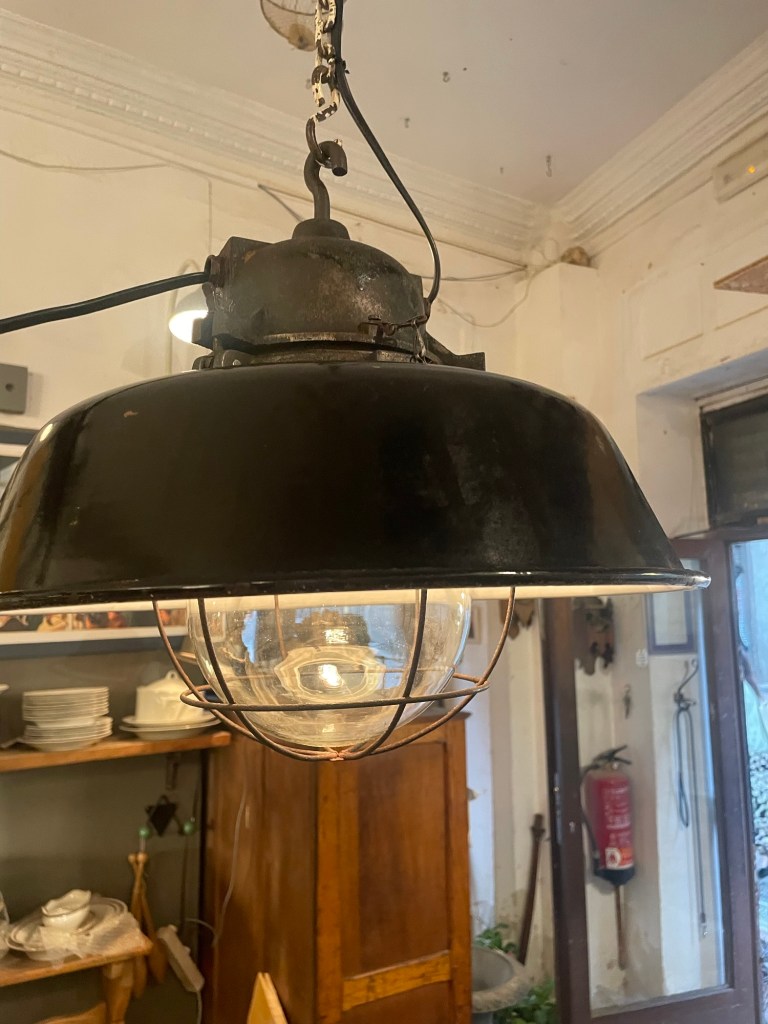 Estas lámparas colgante de estilo industrial combina elegancia y funcionalidad. Fabricada en metal con acabado negro mate y pantalla de vidrio con rejilla protectora, es ideal para espacios con carácter: desde lofts modernos hasta comedores rústicos
