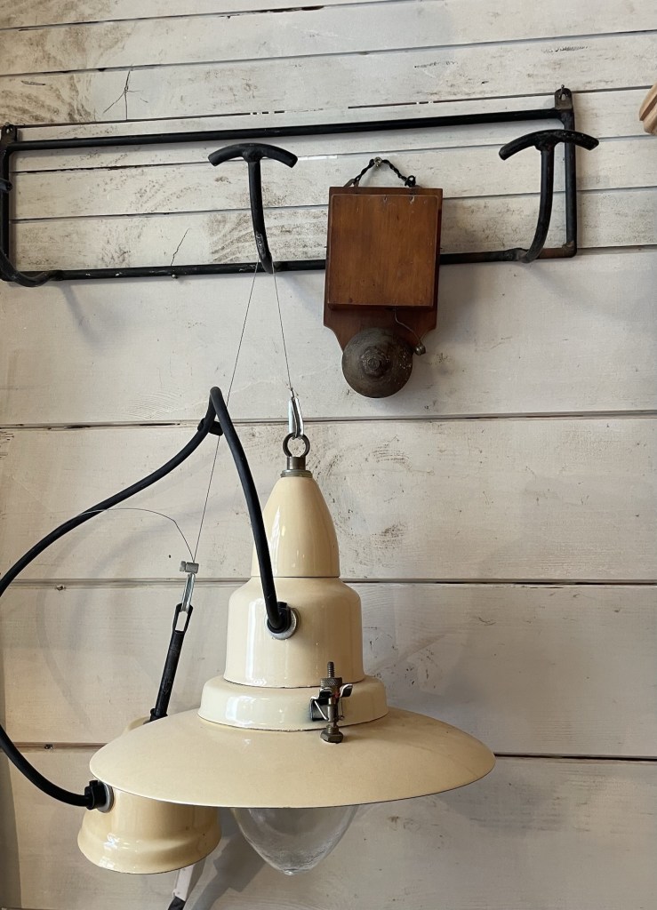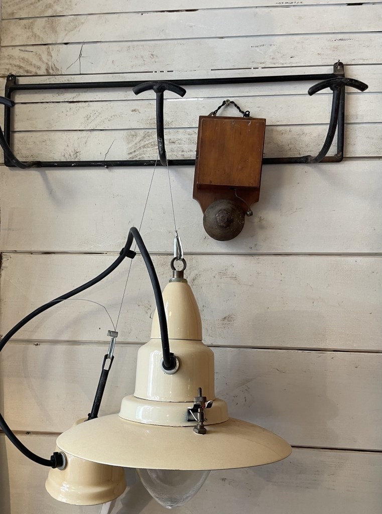 Tenemos dos bonitas lamparas esmaltadas años 60 en buen estado listas para usar en una cocina o en aquel espacio que quieres destacar , las tenemos aquí si, ¿donde sino ? En el trastero universal ¡¡¡¡